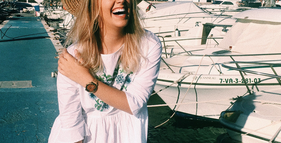El mío en concreto es de la WOOD COLLECTION, lo vi y enseguida supe que combinaría con cualquier cosa y para cualquier temporada, y quise aprovechar la temática náutica para rodar el spot y hacer las fotografías en el puerto, entre el mar y los barcos. Que por cierto formé público porque estaba en una zona privada y faltó poco para que me echaran jajaja